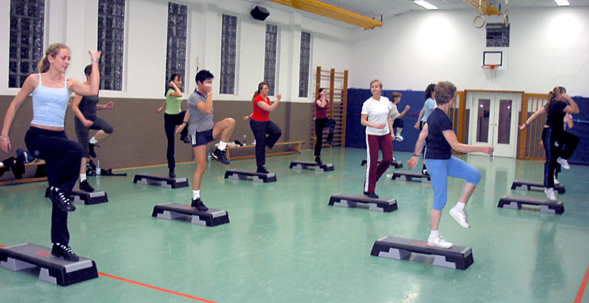Hier bewegt man sich mit und ohne Brett zu aktuellen Hits aus den Charts. Aerobicschritte und Armbewegungen werden zu kleinen Kombinationen verbunden. In der Freitagsstunde wird das Herz-Kreislauf-Training mit einem Kräftigungsprogramm bestehend aus Hantel-, Bauch-, Beine- und Po-Übungen kombiniert.